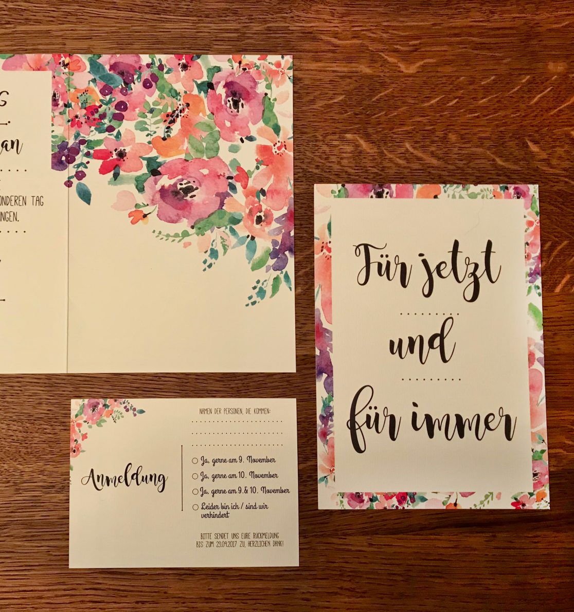 Speisekarten, zweierlei Einladungen und ein Antworten-Coupon zur jeweiligen Einladung durften erstellt werden.
