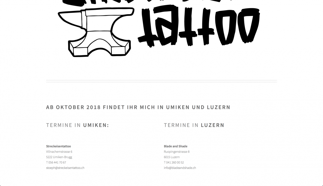 Ab dem 2. Oktober 2017, werden die Tattoos von Stoeph auch in Luzern bei Blade and Shade ihren Weg unter die Haut finden!