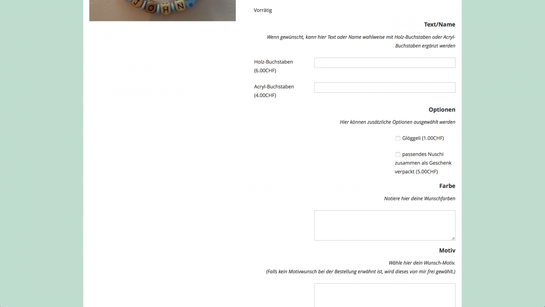 Der Kunde kann seine individuellen Wünsche und Zubehör einbringen und selbst bestimmen, wie der Artikel aussehen soll und welches Zubehör nötig ist.